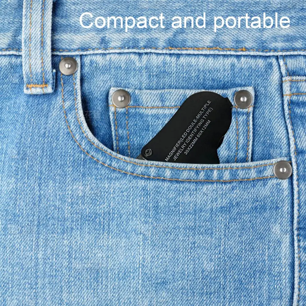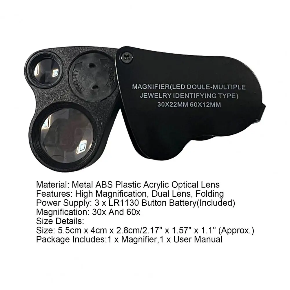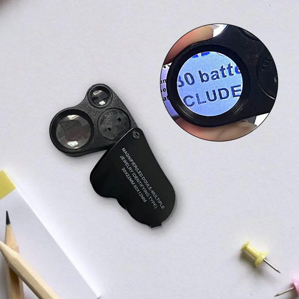 1 Set LED Magnifier Folding Dual Lens High Magnification Ergonomics Magnifying Objects 30x 60x Pocket Magnifying Glass for Outdoor